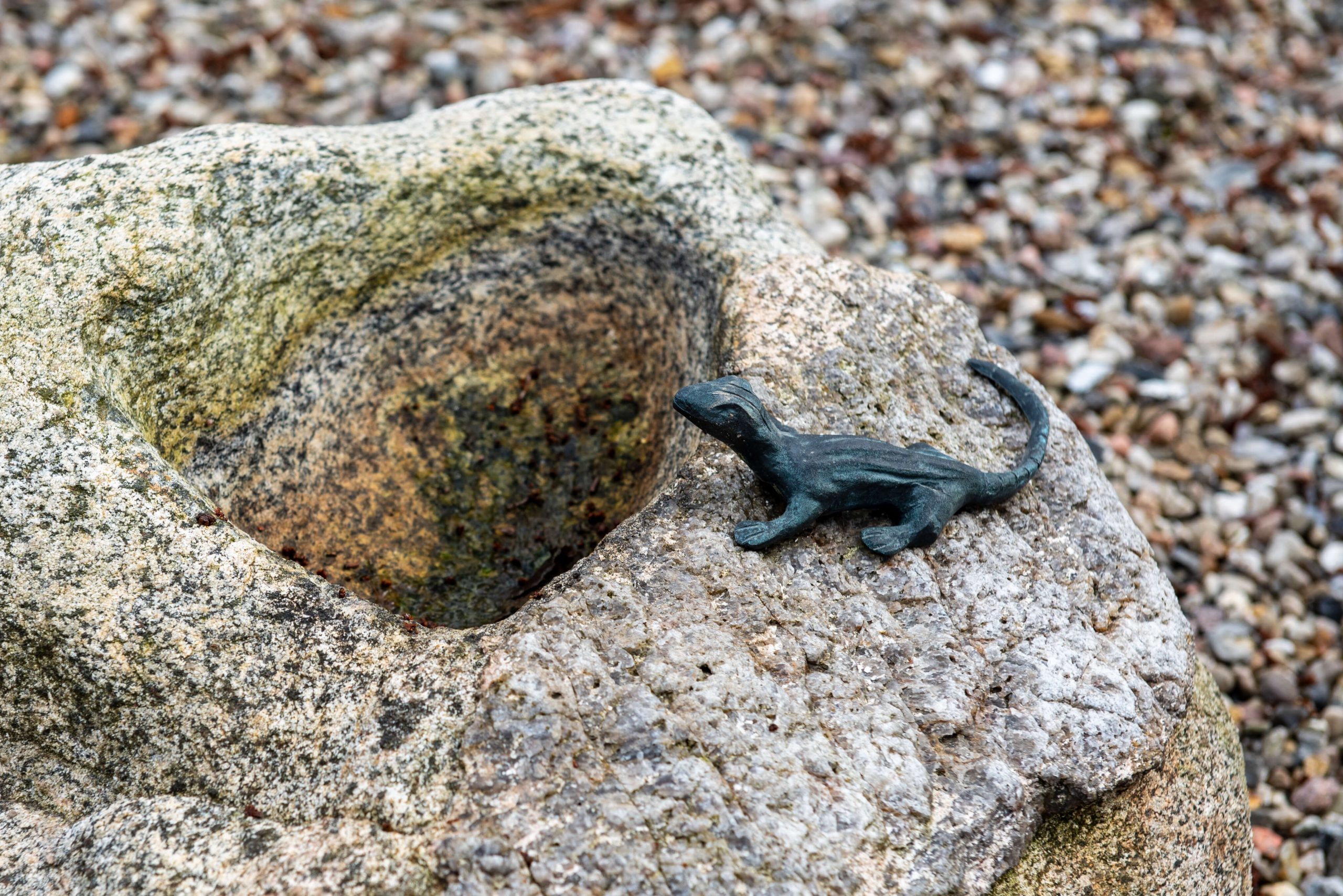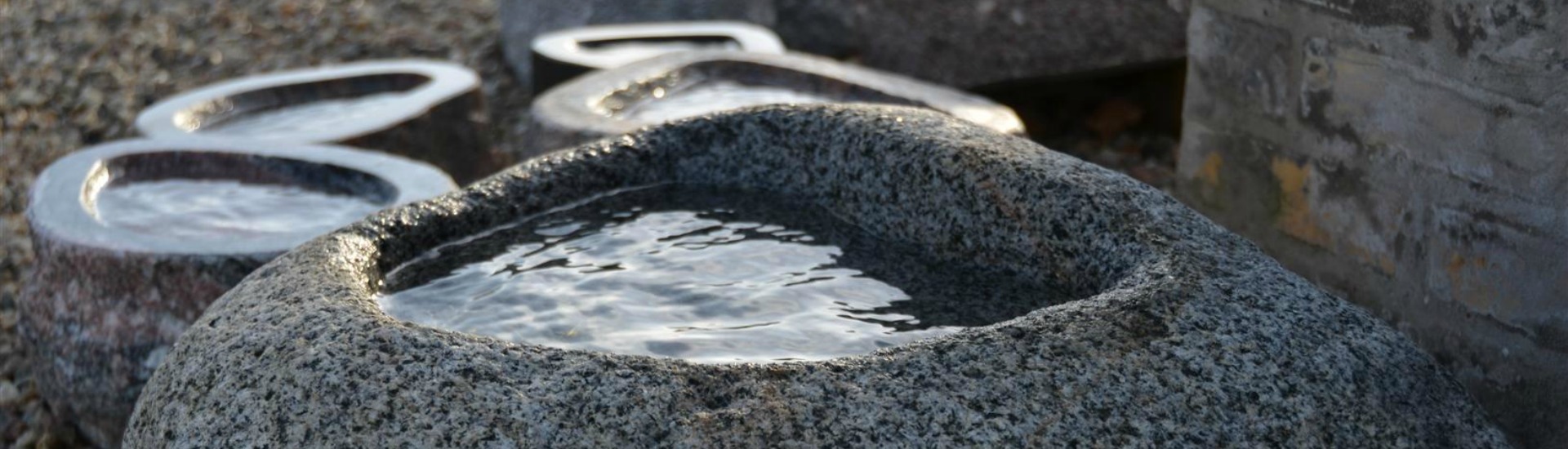 Skab en fredfyldt atmosfære med håndlavet tilbehør i sten – fuglebade, trædesten og granitvaser, der ærer minder og bringer naturen tæt på.